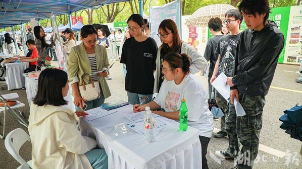 洪山区人力资源局还在招聘会现场设置了“学子聚汉”政策咨询专区,求职学生通过扫码即可获取人才落户、创业扶持等政策指南。