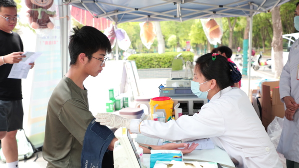 新闻中心讯(记者 许依平 孙欢欢)4月30日下午,武汉工商学院校园里涌动着一片青春的热潮。一辆献血车前,师生们自发排成“长龙”,在武汉血液中心医护人员和志愿者的引导下,有序进行登记、体检、化验、采血,让涓涓热血汇聚成生命的暖流。