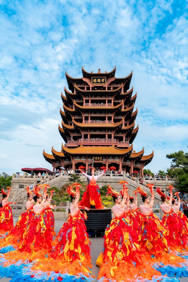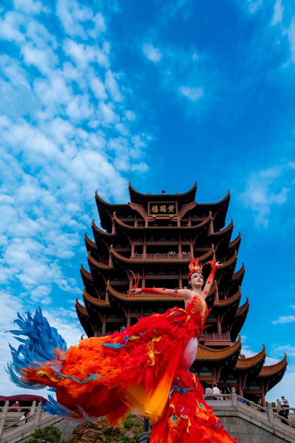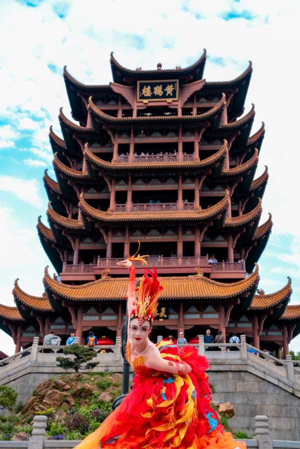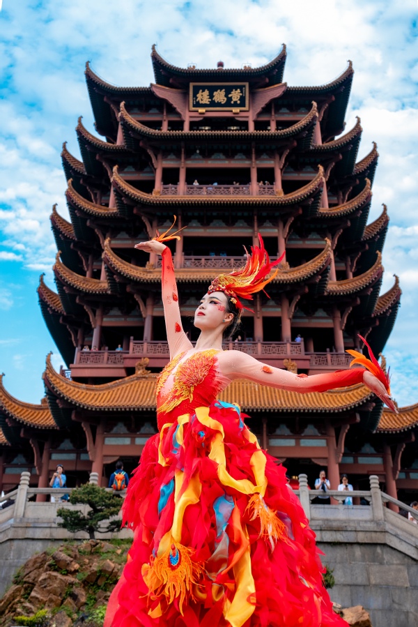 在今年的央视蛇年春晚中,武汉分会场节目压轴震撼登场,迅速霸屏热搜,其中在千年名楼黄鹤楼前表演的凤凰舞,以大气绝美之姿,尽显武汉英雄之城的涅槃重生和蓬勃之力,给全球观众留下了深刻印象,强势出圈、吸粉无数。据黄鹤楼演艺中心艺术总监严黎介绍,为了再现春晚经典,此次黄鹤楼公园演艺中心经过数月的精心编排,让凤凰舞以《凤舞九天》之名在黄鹤楼前重新演绎,“五一”小长假期间不间断演出,每天4场,让广大游客能够在黄鹤楼前直观近距离欣赏武汉风貌,感受武汉精神。