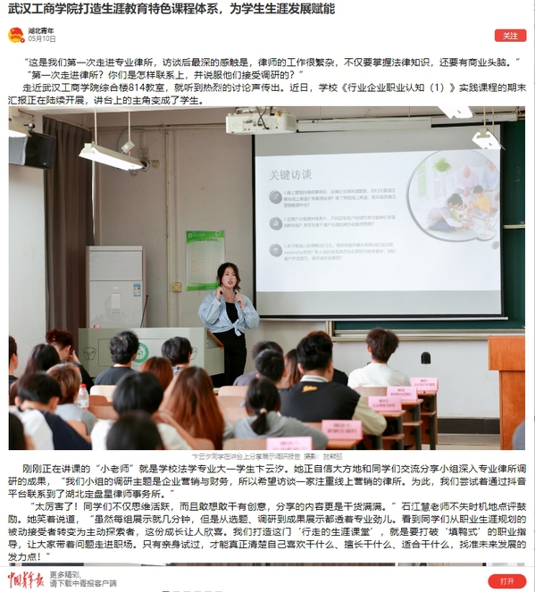 如何发挥生涯教育的优势赋能学生生涯发展以及未来职业发展?作为湖北省第一家生涯教育本土化试点高校,武汉工商学院一直试图在教学与实践中寻找突破的方向。