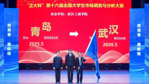 武汉工商学院能够从全国众多高等院校中脱颖而出,获得2026年大赛的承办权,得益于其在学科竞赛组织、产教融合及人才培养方面的深厚积累。学校近年来成功承办了多项国家级、省级学科赛事,积累了丰富的办赛经验,同时,学校始终坚持“以赛促教、以赛促学、以赛促创”的理念,将学科竞赛作为人才培养的重要抓手,不断提升学生的专业素养和实践能力。此次赛旗交接仪式不仅是对武汉工商学院过去成绩的肯定,更是对未来发展的期许,学校将不忘初心、牢记使命,以此次承办2026年全国大学生市场调查与分析大赛为契机,充分借鉴往届大赛的成功经验,结合自身特色优势,精心策划、周密组织,努力将第十六届大赛办成一场高水平、高层次、有特色、有亮点的盛会。同时,学校也将进一步深化教育教学改革,加强产教融合,继续支持学子参与各类学科竞赛,为他们提供更多的实践机会和展示平台,助力他们成长为具有创新精神和实践能力的卓越应用型人才。