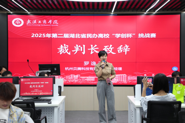 大赛裁判长、杭州贝腾科技有限公司区域经理罗逸云在颁奖致辞中表达了对承办单位武汉工商学院以及参赛院校、指导老师们的感谢,并真诚地预祝同学们在后续的比赛中取得佳绩。