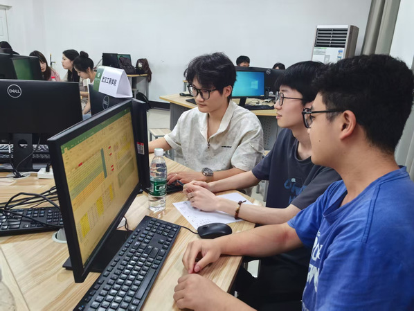 比赛过程中,各代表队间的竞争异常激烈,选手们配合默契、沉着迎战,随着比赛的深入,场面逐步呈现出白热化,赛场一片寂静,选手们屏住气目不转睛紧盯电脑屏幕,只听见敲击电脑键盘的“哒哒”作响声。竞赛后台显示的排名数据,随着各队伍间的每个操作环节与步骤不时交替上升,比分相当接近。经过3个小时的激烈搏杀,武汉工商学院三队和武汉工商学院二队脱颖而出,力拔A、B两组头筹,武汉学院、武汉轻工大学、武汉科技大学等高校代表队分别斩获各组别的前七名。