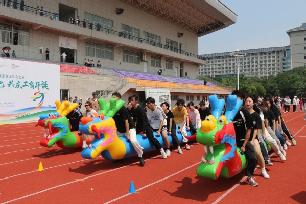 “加油!加油!”该校田径场上,12支旱地龙舟队奋力“划桨”,队员们同舟共济、奋力向前,拼尽全力向前冲,围观的师生为他们加油助威。来自尼泊尔、伊拉克的3位留学生也参加了比赛,他们表示既新奇又充满挑战。来自伊拉克的学生海德说:“这个项目很考验团队协作能力,我们差点摔倒,但特别开心!”来自尼泊尔的尼锐说:“这比普通赛跑有趣多了,我在尼泊尔没有参加过这样的活动。”