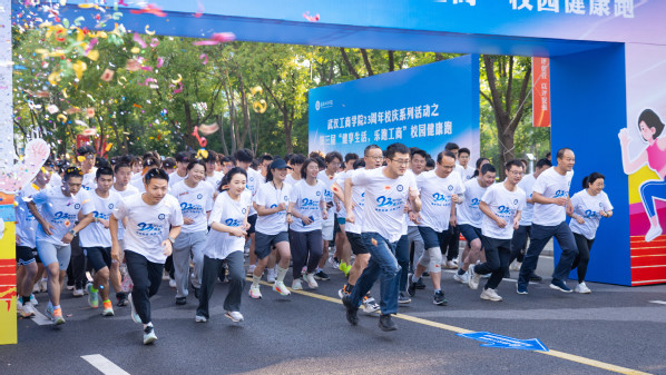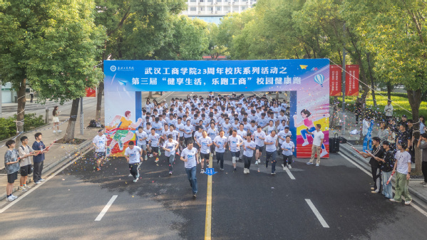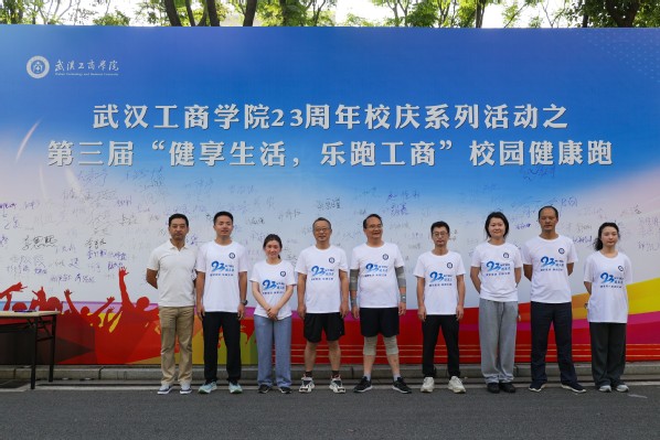 新闻中心讯(记者 刘欣宇)5月29日早上7:20,随着清脆的发令枪响,在副校长左宗文、总会计师王程军的带领下,武汉工商学院23名教师和230名学生身着校庆文化衫,迎着初夏的微风昂首向前、热情奔跑,感受运动带来的酣畅淋漓,共庆建校23周年。