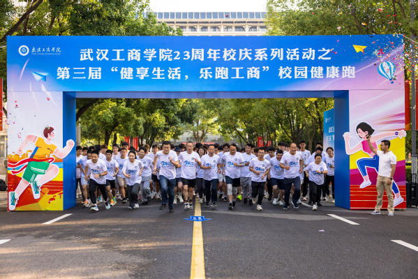 作为武汉工商学院2025年校庆月系列活动之一,第三届“健享生活 乐跑工商”校园健康跑活动设置有男子、女子两个组别,以健康跑的形式进行,全程约2.3公里。健康跑活动的起点和终点均设置在学校艺术文法楼前,途经南大门、体育运动中心、综合楼、实验楼、静思湖、图书馆等地点。沿途还设有医疗点与服务点,160余名工作人员和志愿者参与了前期筹备、组织与现场保障工作。