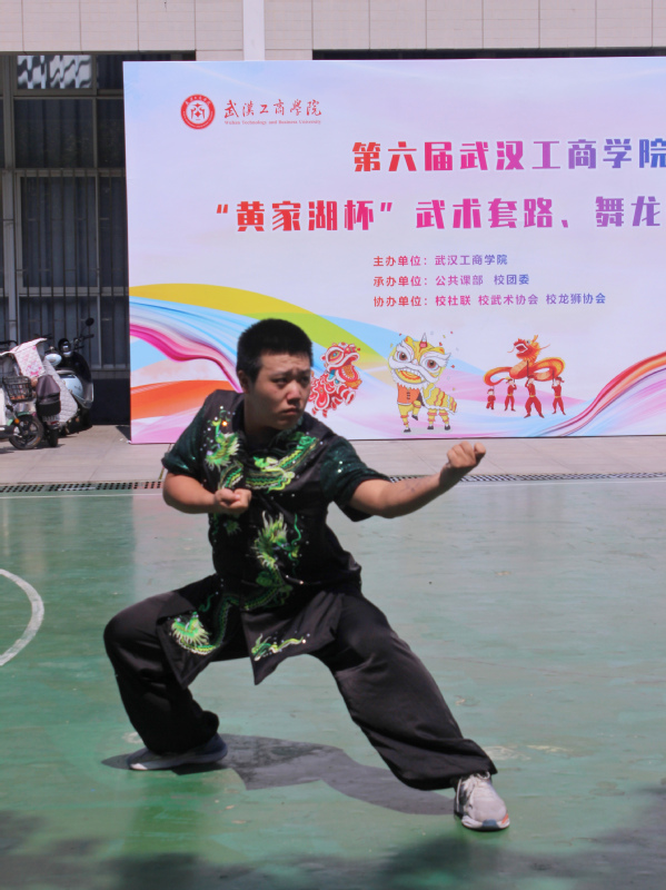 新闻中心讯(特约记者 邢扬埼)6月5日下午,由武汉工商学院公共课部、校团委共同承办的第六届“黄家湖杯”武术套路、舞龙比赛在校内火热开赛,本次比赛共吸引了来自各二级学院的88名学生踊跃参与。