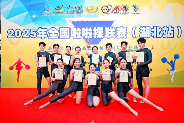 新闻中心讯(特约记者 文碧璇)6月8日,由国家体育总局体操运动管理中心主办,湖北省社会体育管理中心、武汉东湖学院、湖北省社会体育指导员协会承办的2025年全国啦啦操联赛(湖北站)圆满收官,武汉工商学院艺术与设计学院舞蹈表演系啦啦操队凭借精湛技艺与出色发挥一举夺得两枚金牌、两枚银牌。