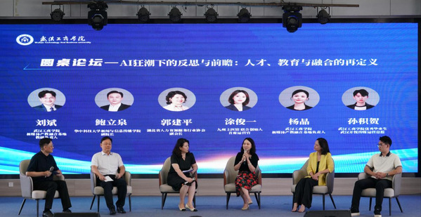 会议还组织了以《在“AI 狂潮下的反思与前瞻:人才、教育与融合的再定义》为主题的圆桌论坛,鲍立泉、湖北省人力资源服务行业协会副会长郭建平、九州上医馆联合创始人涂俊一、武汉工商学院代表杨晶及优秀毕业生孙积贺展开讨论。嘉宾们聚焦 “AI 是否会取代新媒体岗位”“教育如何应对技术变革” 等议题,达成共识:AI 将重塑职业技能需求,但创造性思维、情感沟通等软实力仍是人才核心竞争力,高校需在课程中融入 “AI 工具应用” 与 “人文素养” 双模块。