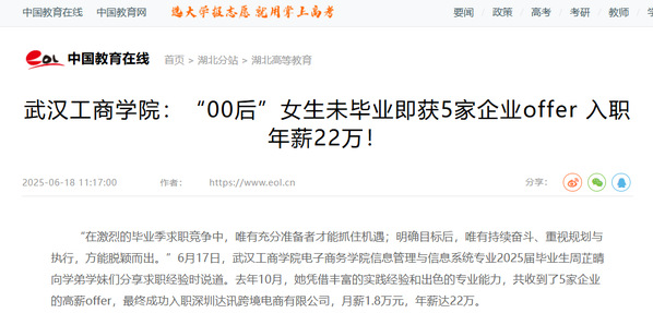 “在激烈的毕业季求职竞争中,唯有充分准备者才能抓住机遇;明确目标后,唯有持续奋斗、重视规划与执行,方能脱颖而出。”6月17日,武汉工商学院电子商务学院信息管理与信息系统专业2025届毕业生周芷晴向学弟学妹们分享求职经验时说道。去年10月,她凭借丰富的实践经验和出色的专业能力,共收到了5家企业的高薪offer,最终成功入职深圳达讯跨境电商有限公司,月薪1.8万元,年薪达22万。