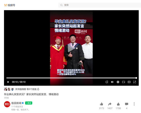 极目新闻视频号:毕业典礼突发状况?家长突然站起发言,情绪激动