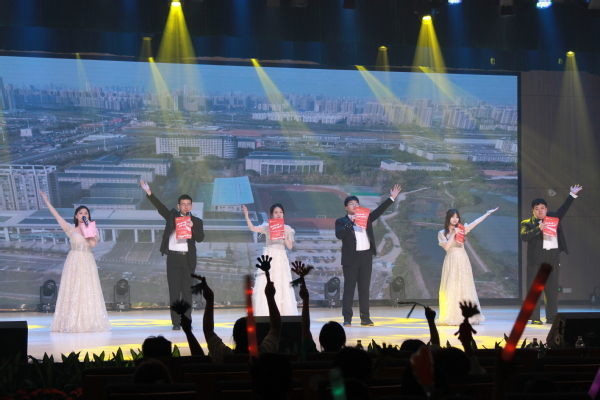 歌曲《一期一会》旋律悠扬,歌手用温柔的歌声传递出珍惜相遇的美好情愫;铿锵有力的诗朗诵《致少年工商》,由左宗文副校长创作,朗诵者以声传情,带领大家回溯在校园中度过的青春岁月;舞蹈《绣在穿引间》将传统刺绣艺术与现代舞蹈巧妙融合,舞者们婀娜的身姿展现出传统与艺术融合之美;歌曲《大山》以激昂的旋律和真挚的情感,唱出对梦想的执着与追求;话剧《逐风的选择》通过生动的表演,演绎了一段逐梦路上的动人故事,引发观众共鸣;歌曲《老师,我总是想起你》情感真挚、充满温情,唱出了难忘的师生情,令广大毕业生为之动容;歌曲《Wonderful U 》旋律轻快,用美妙的音符传递着生活中的美好;歌曲《天空没有极限》节奏有力,激励着毕业生们勇敢追求无限可能;歌曲串烧《毕业 Disco》充满活力的节奏瞬间嗨翻全场,大家纷纷跟着节奏摇摆,将气氛推向高潮。