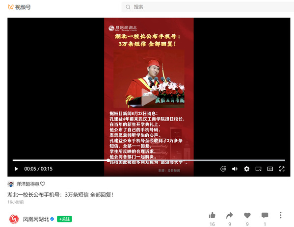 凤凰网湖北视频号:湖北一校长公布手机号:3万条短信 全部回复!