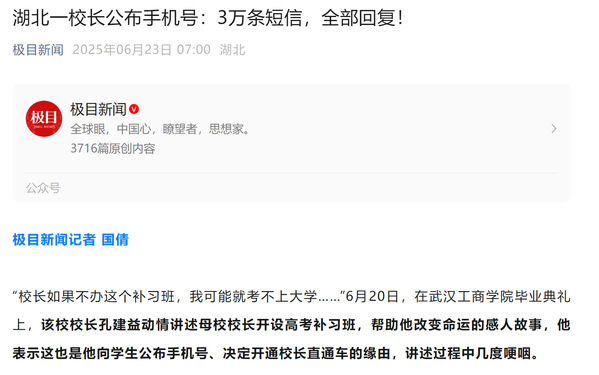 他表示,正是这位好校长全心全意为学生着想的事迹感染了他,激励着他从1984年开始走上讲台,到后来担任武汉科技大学的校长、党委书记,到现在担任武汉工商学院的校长,一直保持着那份热爱教育事业、热爱学生的初心。这也是他为什么向全校学生公布手机号、开通校长直通车的原因。