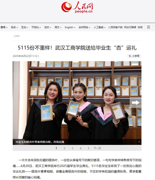 一片片去年深秋珍藏的银杏叶,一份校长亲笔写下的殷切寄语,一句句学弟学妹熬夜写下的祝福……6月20日,武汉工商学院举行2025届学生毕业典礼,5115名毕业生收到了一份别出心裁的毕业礼物——银杏叶青春相框,装着金黄银杏叶的相框,不仅封存有校园的最美秋色,更承载着师长同窗的暖心祝福。