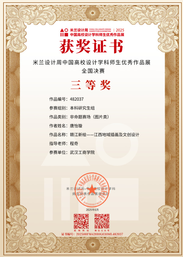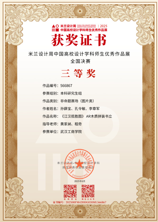 新闻中心讯(记者 陈雯茜)近日,2025年第九届米兰设计周——中国高校设计学科师生优秀作品展全国总决赛落下帷幕,武汉工商学院艺术与设计学院师生凭借扎实的专业素养与卓越的创新能力,斩获国家级非命题赛道10项大奖,其中一等奖1项、二等奖2项、三等奖7项。