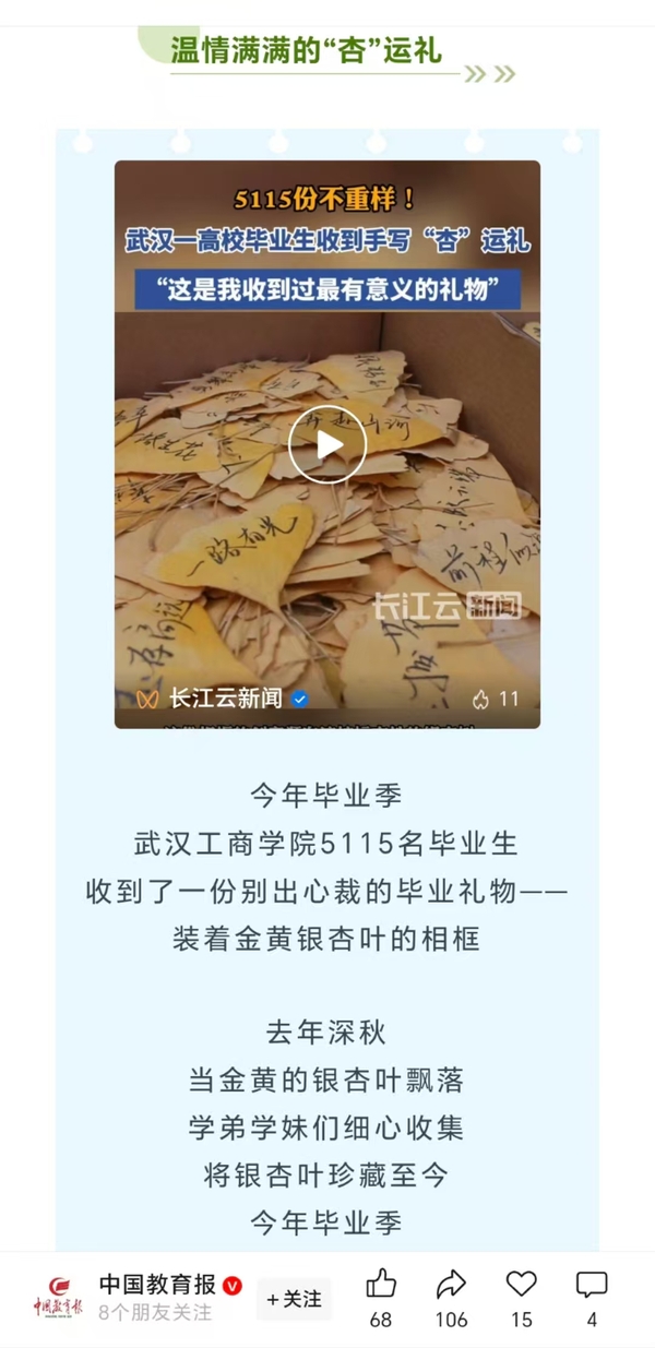 中国教育报微信公众号:太宠了!这些毕业“礼物”太走心!网友:我也想有这样的母校!