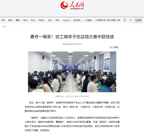 “蓝桥杯”大赛由工业和信息化部人才交流中心、教育部全国高校学生信息咨询与就业指导中心联合举办,是国内权威性高、覆盖面广、影响力大的IT类专业赛事。本届“蓝桥杯”全国总决赛吸引了来自全国2000余所高校及海外10余所顶尖学府的选手同台竞技,武汉工商学院共有13名学生参加了国赛,全部获奖。