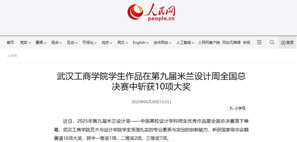 近日,2025年第九届米兰设计周——中国高校设计学科师生优秀作品展全国总决赛落下帷幕,武汉工商学院艺术与设计学院学生凭借扎实的专业素养与突出的创新能力,斩获国家级非命题赛道10项大奖,其中一等奖1项、二等奖2项、三等奖7项。