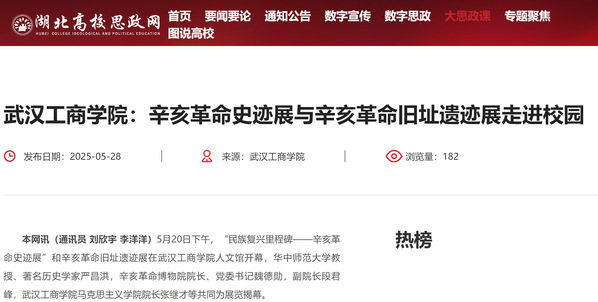 “这些珍贵的文物、泛黄的照片、详实的史料,生动再现了辛亥革命的历史以及中华民族伟大复兴道路上的峥嵘岁月,它们不仅是历史的见证,更是激发青年爱国情怀的火种。”魏德勋院长介绍,为进一步深化馆校协同育人的实践路径与创新机制,今年4月17日,辛亥革命博物院与武汉工商学院签订了共建“大思政课”实践教学基地协议,此次两项展览走进校园便是双方落实共建协议的举措之一,希望通过展览,能让更多的人了解辛亥革命的历史作用,传承弘扬以爱国主义为核心的辛亥革命精神,让辛亥革命的精神在新时代的青年中扎根生长,让红色基因代代相传。