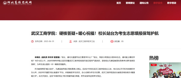 作为教育界的“暖心标杆”,孔建益始终践行零距离育人理念。自2021年担任武汉工商学院校长以来,他主动公开手机号码倾听学生心声;2023年开通的“校长直通车”平台,积极响应学生诉求,全心全意为学生办实事,武汉工商学院因此也被很多网友称为“最温暖大学”。此次开放日,这位“中国好校长”再次将服务端口前移,把专业指导送到考生身边。
