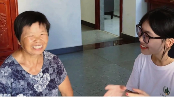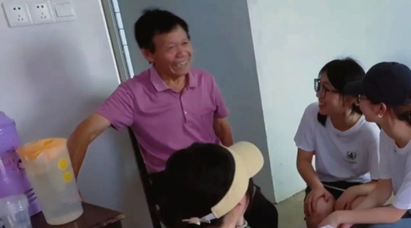 一个个温暖笑容的精彩片段,成为夏日里动人的风景。在屋前,志愿者们与老人亲切交流,老人脸上洋溢着质朴的笑意,志愿者们或比心、或比耶,青春活力与老人慈祥相融,温馨画面被相机定格,笑容化作传递爱与关怀的符号。