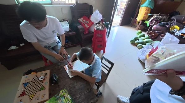 抵达都昌镇西河村后,“青禾志愿服务队”迅速行动,深入村民家中走访。在农家小院、堂屋等充满生活气息的场所,志愿者们围坐在一起与当地老人、小孩儿亲切交流。