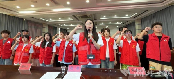 7 月 8 日上午,秭归县茅坪镇丹阳社区活动室暖意融融,2025 年暑期职工子女爱心托管班开班仪式在此举行,朝沐志愿服务队志愿者们整装待发。开班仪式上,丹阳社区党建员韩玉巧解读活动方案,志愿者代表杨新春发言真挚恳切,学生代表也表达了对假期的期待。在带队老师徐清妍领誓下,志愿者们集体宣誓,承诺用责任守护孩子们的假期。仪式尾声,志愿者们为孩子们送上学习用品。