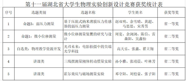 今后,武汉工商学院也将以此次获奖为契机,继续坚持“以赛促教、以赛促学、以赛促改”的理念,不断深化物理实验教学改革,为在校学子创造更加优良的实验条件和学习环境,积极培养学生的工程意识、创新思维、综合能力,有效提高物理实验教学质量和应用型人才培养质量。