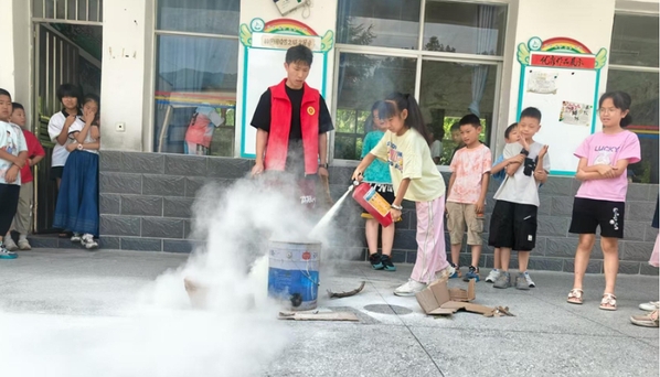 志愿者们将理论讲解与动手实践紧密结合。课堂上,消防要领与逃生技巧的讲解清晰生动;课堂外,灭火器的实操演示点燃了孩子们的学习热情。“一提二拔三握四压”的操作口诀,成为孩子们争相记忆的安全密码。