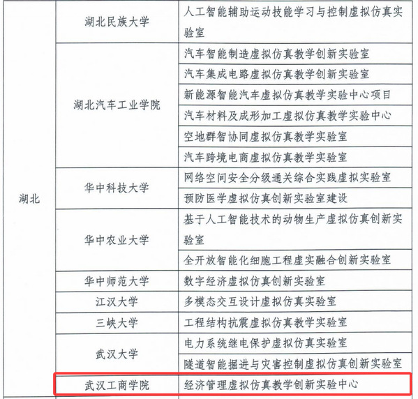 近日,教育部教育技术与资源发展中心(中央电化教育馆)公布了高等学校虚拟仿真教学创新实验室项目第二批项目学校及案例团队名单。由武汉工商学院实验教学中心主任李明教授牵头申报的“经济管理虚拟仿真教学创新实验中心”项目成功入选,为湖北省同类高校唯一获批项目。