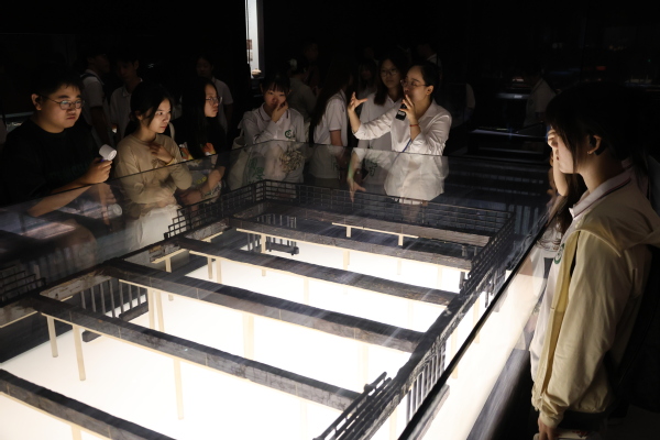 据悉,此次实地研学作为本届国学夏令营的一堂重要课程之一,国学教育研究院教师张凤篪与湖北省博物馆社教部教师温静早在今年8月初便进行了接洽,详细商定了当日行程、门票预约、讲座安排等诸多事宜。研学当日,百余名学员还在湖北省博物馆陈珊琦、黄晶晶、孙楚缘三位讲解员的带领下,沉浸式参观湖北省博物馆,走近荆楚文化、品读曾随故事,感受中华文化的独特魅力,并观看了编钟表演,近距离欣赏楚文化古韵。