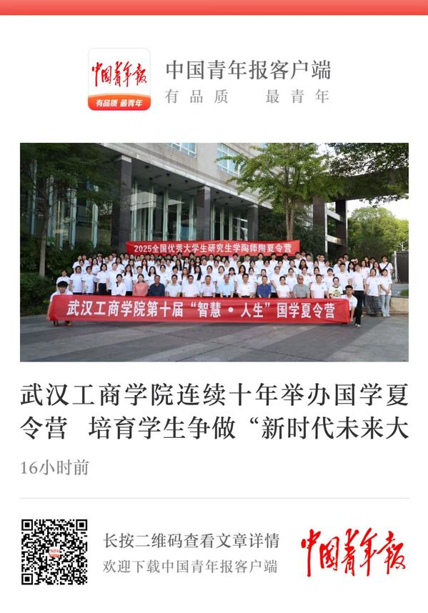 据悉,武汉工商学院国学夏令营已成功举办十届,累计惠及学子超千名。十年坚守,始终致力于弘扬中华优秀传统文化,其成果与模式在省内乃至全国同类高校中均堪称典范。