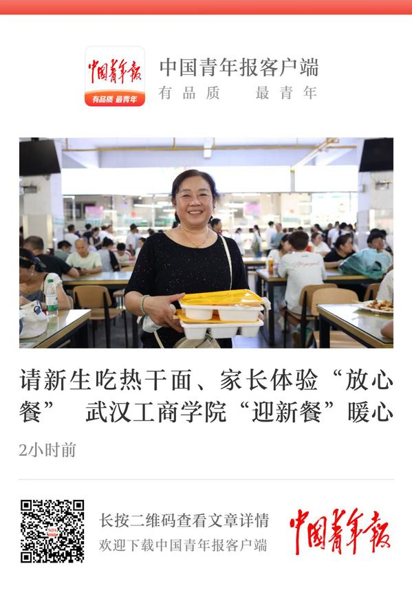 迎新当天,该校食堂内人头攒动,新生们手持随录取通知书寄达的“见面礼”——热干面套餐餐券,兑换属于他们的第一份大学温暖。这份套餐包含地道的武汉热干面和一杯醇香豆浆,既具地方特色,又饱含“大学之城的‘热’情、英雄城市的‘干’劲、期待和你‘面’对面”的深情寓意。给新生送热干面套餐的习惯,在该校已延续3年。