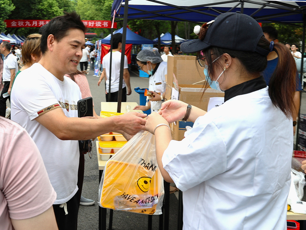 图为新生家长领取“放心餐” 摄影:芮雨欣