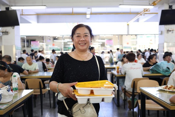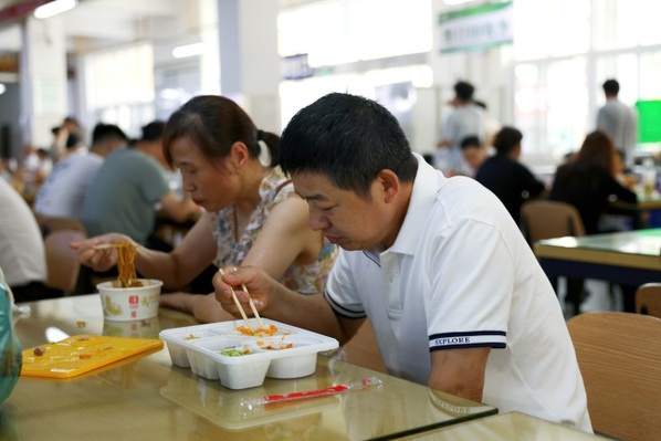 除了送热干面外,该校还特意为远道而来的新生家长提供了免费的“食堂体验餐”,包含两荤两素、煎蛋、咸菜,并配有矿泉水和酸梅汤,诚意十足。许多家庭手持专属餐券,选择在食堂完成报到后的“第一餐”,品尝“放心餐”。