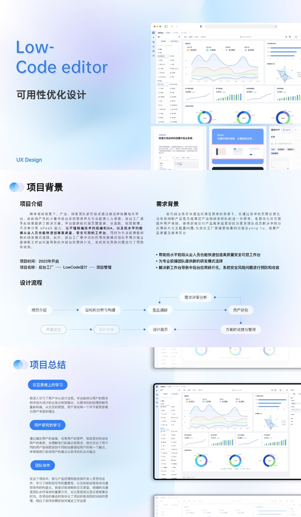 同年7月,他进入快手实习,担任B端低代码业务线交互设计师,参与用户调研与全链路设计,通过与前后端紧密协作,优化复杂业务场景下的产品体验。尽管B端编程对他而言是全新领域,他仍通过自学和导师指导出色完成任务,积累了宝贵的To B设计经验。