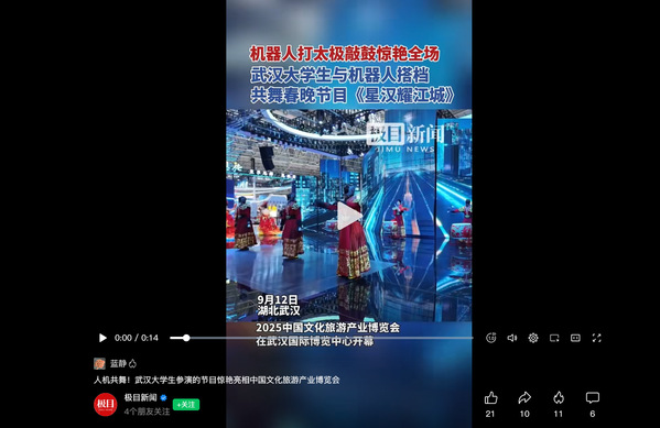 极目新闻视频号:人机共舞!武汉大学生参演的节目惊艳亮相中国文化旅游产业博览会