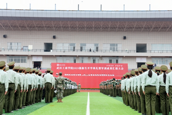新闻中心讯(记者 陈雯茜 李洋洋)9月22日上午,武汉工商学院2025级新生开学典礼暨军训成果汇报大会在学校田径场隆重举行。军训承训部队领导,学校校长孔建益、党委书记詹河焰等校领导,各二级学院院长、党总支书记(副书记),各职能部门负责人,教师代表,2025级新生辅导员,在校生代表以及2025级全体新生参加大会。大会由校党委副书记幸福堂主持。