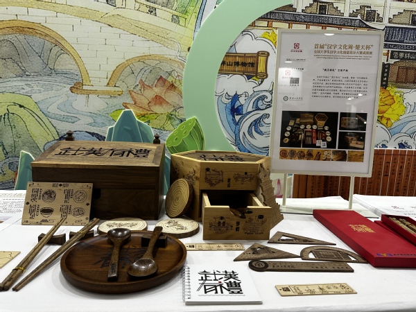依托“书香长江”阅读周·武汉书展的展示平台,获奖作品与学校艺术与设计学院另外多件优秀文创作品一同受邀亮相大赛文创展示区,包括《江汉揽胜图》《江泽珍灵》《屈家礼》《武汉有礼》《字绘中国》等。团队成员还与参会嘉宾、观众深入交流作品背后的文化内涵,充分展现了学院在汉字文化创意设计领域的教学成果与学生风采,也为书展增添了传统文化与创意设计融合的独特魅力。
