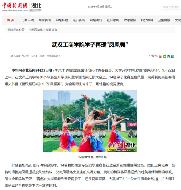 据悉,在今年的央视蛇年春晚中,武汉分会场的主题节目《星汉耀江城》在网上爆火出圈,武汉工商学院舞蹈表演专业110名学子参加了该节目表演,此次该校选拔了14名学生在新生开学典礼上表演。这场跨越荧屏与校园的视觉盛宴,不仅展现了该校美育教育的丰硕成果,更以凤凰涅槃的美好寓意,祝愿2025级新生在大学这个新起点上展翅高飞,书写人生华彩篇章。(完)