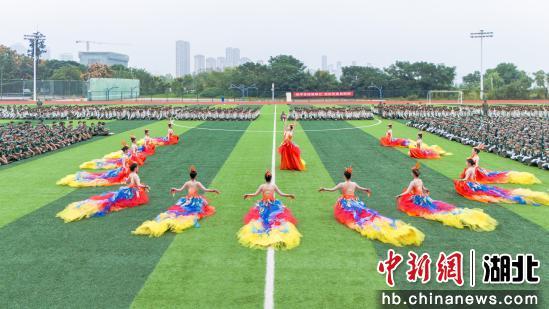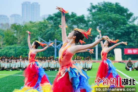 中新网湖北新闻9月22日电(李洋洋 陈雯茜)绿茵场地化作青春舞台,大学开学典礼秒变“春晚现场”。9月22日上午,在武汉工商学院2025级新生开学典礼暨军训成果汇报大会上,14名学子化身金色凤凰,完美复刻央视春晚爆火节目《星汉耀江城》中的“凤凰舞”,为全场师生带来了一场惊艳的视觉盛宴。