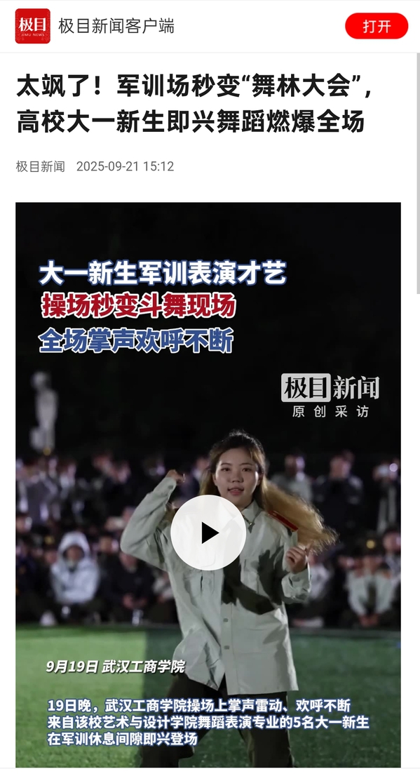 “太飒了!完全没想到休息时间能看到专业级表演,这将成为军训生活中珍贵的回忆。”表演结束后,现场同学兴奋地说。