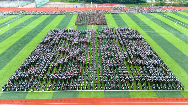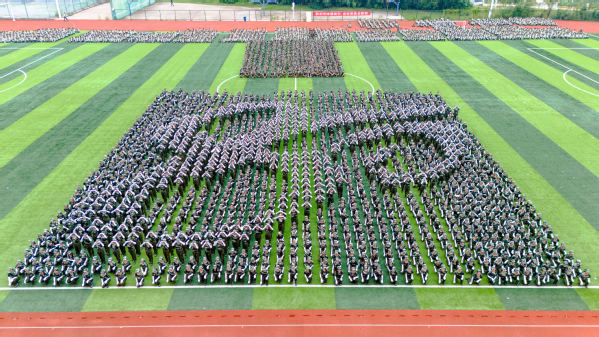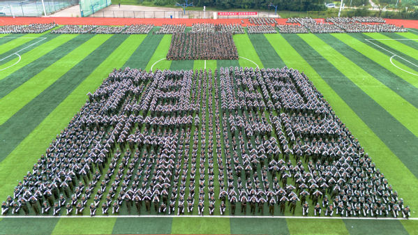 9月22日上午,武汉工商学院2025级新生开学典礼暨军训成果汇报大会在校田径场举行。由1500余名新生组成的女子花样方阵依次变换出“1949”“天安门”“中国我爱你”等字样,传递对伟大祖国的深情祝福,场面十分壮观。