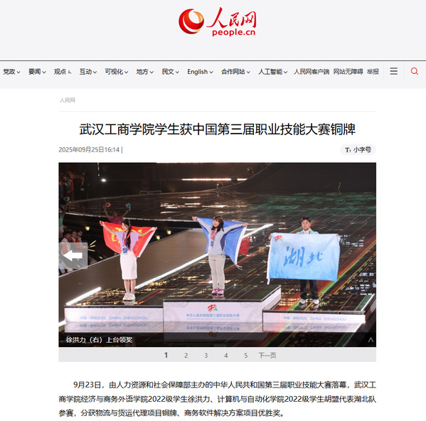 9月23日,由人力资源和社会保障部主办的中华人民共和国第三届职业技能大赛落幕,武汉工商学院经济与商务外语学院2022级学生徐洪力、计算机与自动化学院2022级学生胡盟代表湖北队参赛,分获物流与货运代理项目铜牌、商务软件解决方案项目优胜奖。