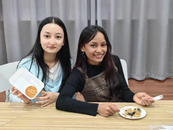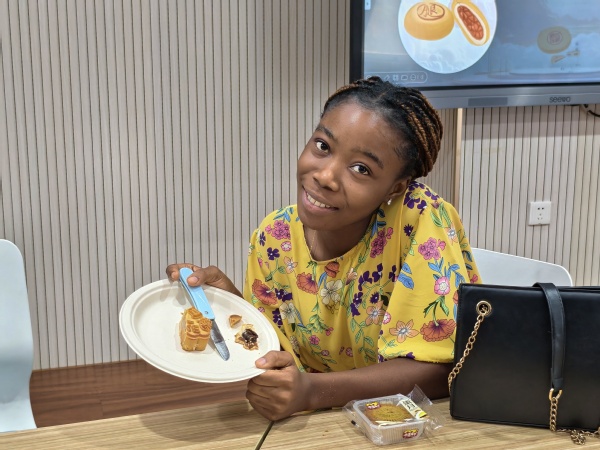 月饼品尝环节更是香气弥漫、笑语不断。莲蓉的绵密、五仁的丰富、豆沙的香甜……八种风味轮番登场,留学生们一边品尝,一边开心地交流着各自国家的节日习俗。“这个味道太棒了!”一位利比里亚学生举着月饼,满脸惊喜。不同文化在舌尖相遇,团圆的意义也在分享中传递。