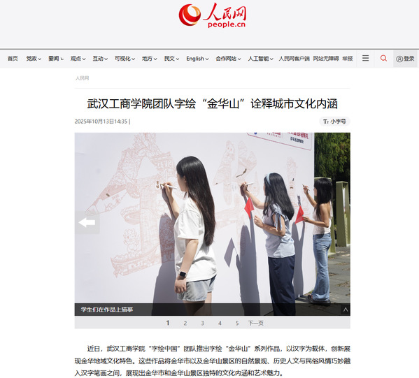 近日,武汉工商学院“字绘中国”团队推出字绘“金华山”系列作品,以汉字为载体,创新展现金华地域文化特色。这些作品将金华市以及金华山景区的自然景观、历史人文与民俗风情巧妙融入汉字笔画之间,展现出金华市和金华山景区独特的文化内涵和艺术魅力。