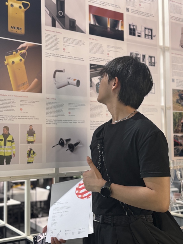 回顾大学成长经历,蔡畅感慨,“衷心感谢我的授业恩师。是他们以扎实的学识与深厚的阅历指引我,打下了坚实的专业基础。我能走上红点设计奖的领奖台,每一步都凝聚着老师们的心血。”大学期间,受学校以赛促学浓厚氛围的影响,蔡畅在学院老师的指导下积极参加各类竞赛。从2024年至今,凭借这一作品,他不仅获得了德国红点设计概念奖,还陆续斩获了欧洲产品设计奖的顶级设计奖、伦敦设计奖的金奖、韩国K-Design设计奖,以及米兰设计周中国高校设计学科师生优秀作品展全国一等奖、2024全国青年设计师大赛三等奖等15项国内外设计大奖。
