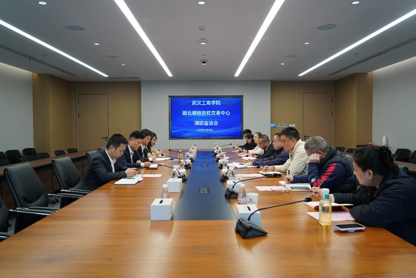 本次调研活动于中碳登大厦21楼多功能会议室举行。武汉工商学院由副校长张俊带队,教务部部长王猛、管理学院常务副院长聂新田、经济与商务外语学院副院长徐良培、管理学院副院长徐雅琴等共同参与。湖北碳排放权交易中心党委副书记、总经理何昌福,碳能力建设部经理、中碳教育公司执行董事王威,市场研究部经理陈远等负责人接待并参与交流。