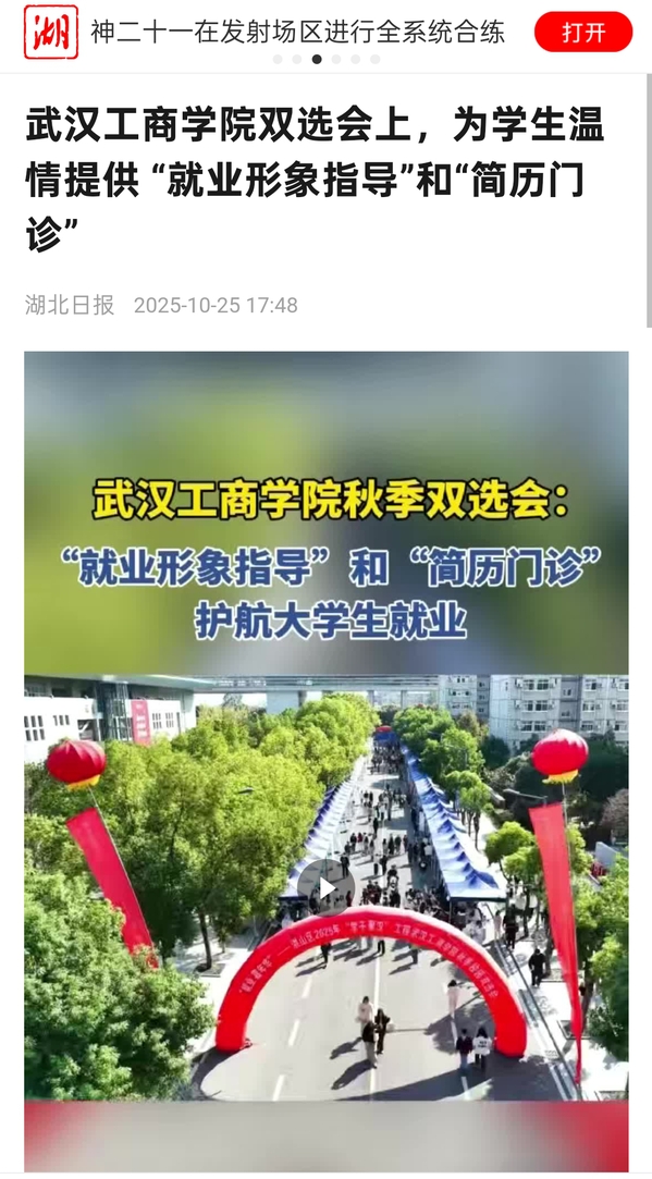 湖北日报讯(记者韩晓玲、通讯员许依平、孙欢欢)“老师,您看我的简历重点突出吗?”“职场妆容有什么注意事项?”10月23日,在洪山区2025年“学子聚汉”工程暨武汉工商学院秋季校园双选会现场,学生们在“就业形象指导”和“简历门诊”专区排起了长队。
